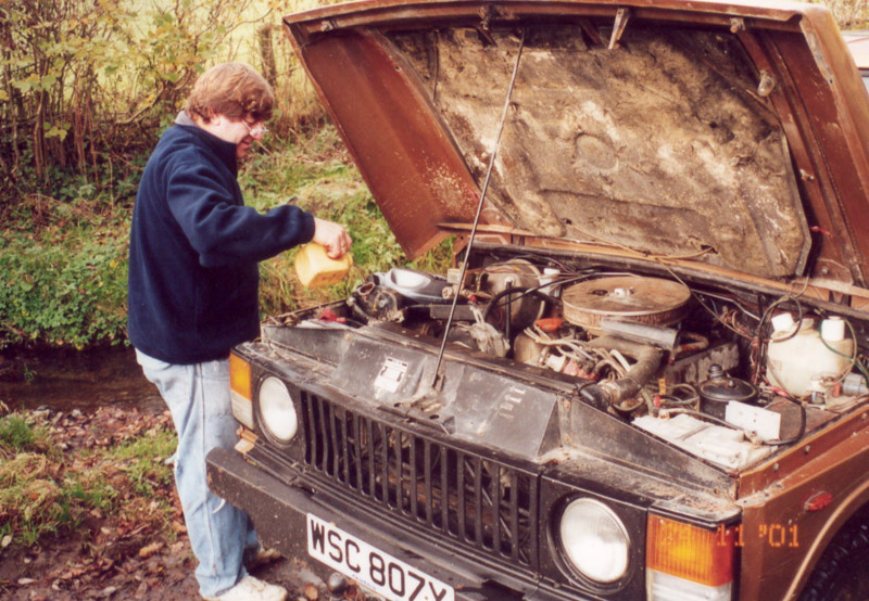 After about half a mile we crossed a stream, so we stopped and filled the radiator up with water. From here we continued on but missed the fork, for the lane we wanted, as it was cunningly disguised by a fence. We ended up coming up a narrow lane back onto the B4580 about half a mile further on than we started. It was about 12:30 so we decided to stop for a cuppa before continuing.