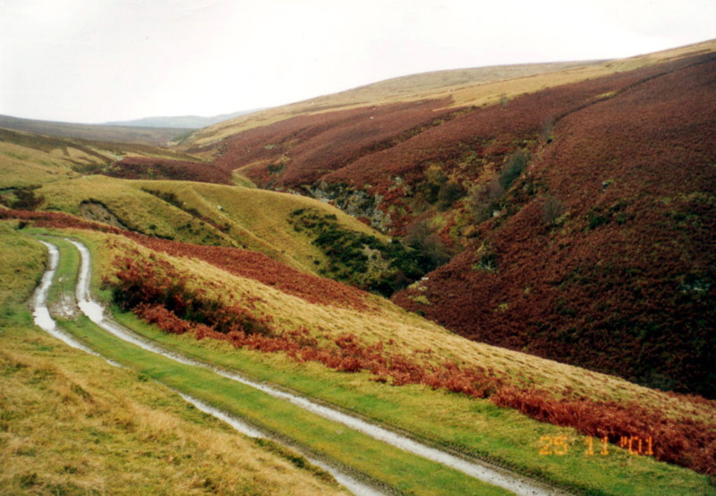 After studying the map we decide to make a detour and come up a different lane which met the intended lane about a quarter of a mile from where we were. Things now went hopelessly wrong and we hadn’t a clue where we were. We had completely missed the entrance to the intended lane and ended up going through a farmyard and across a field ending up back on tarmac with no landmarks or signs to help us. Even trying to trace our route on the map didn’t help so we tossed a mental coin, left or right? We opted for left and started to drive, eventually driving through Golfa, at last we knew where we were. We continued on this road until we came to the intersection with the B4580, where we turned left. After a short while we came to the opposite end of the lane we were trying to come down in the first place. We decided to go down it in the opposite direction to try and find the place where we should have come in